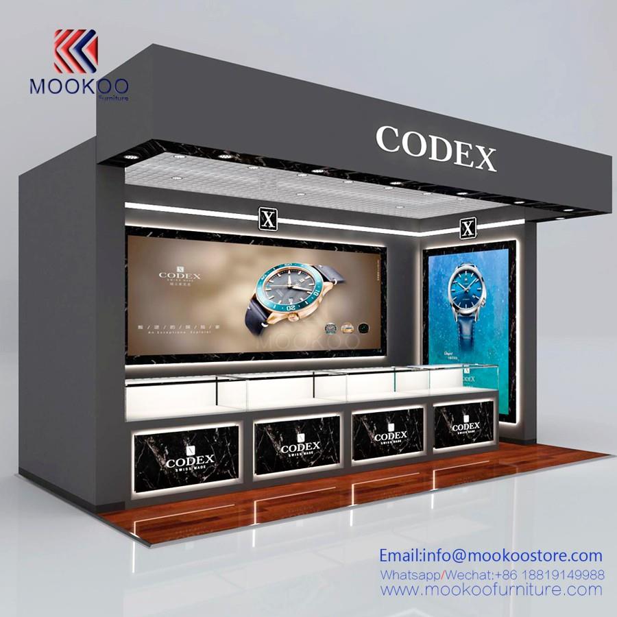 This Codex watch display kiosk is made by us, you could directly use it . every part is design and produced by the MOOKOO.